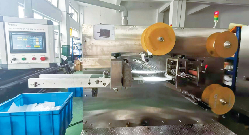 - A máquina de perfuração de adesivos médicos tem como características controle de tensão de alta precisão, utilizando um sistema de controle de tensão por embreagem de pó magnético para rebobinar o adesivo.